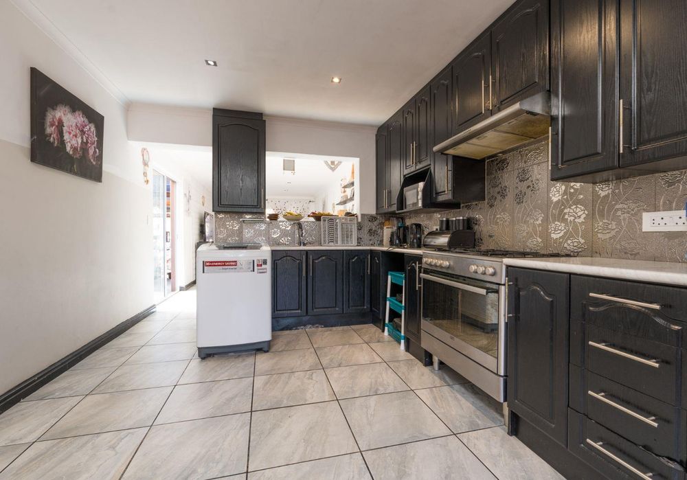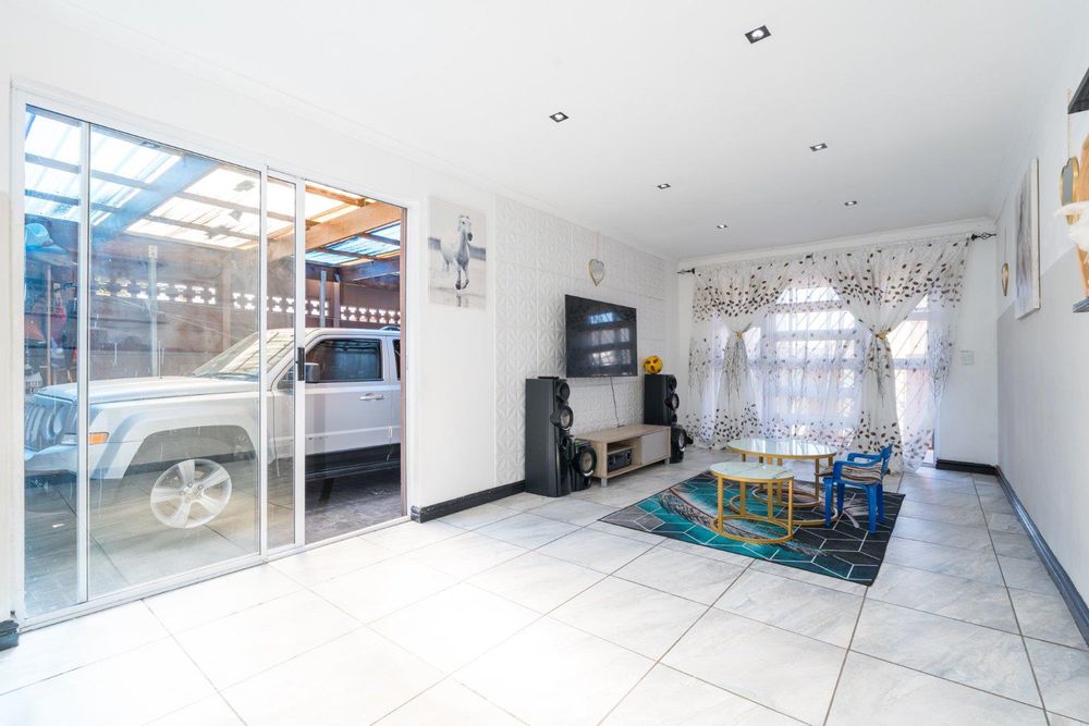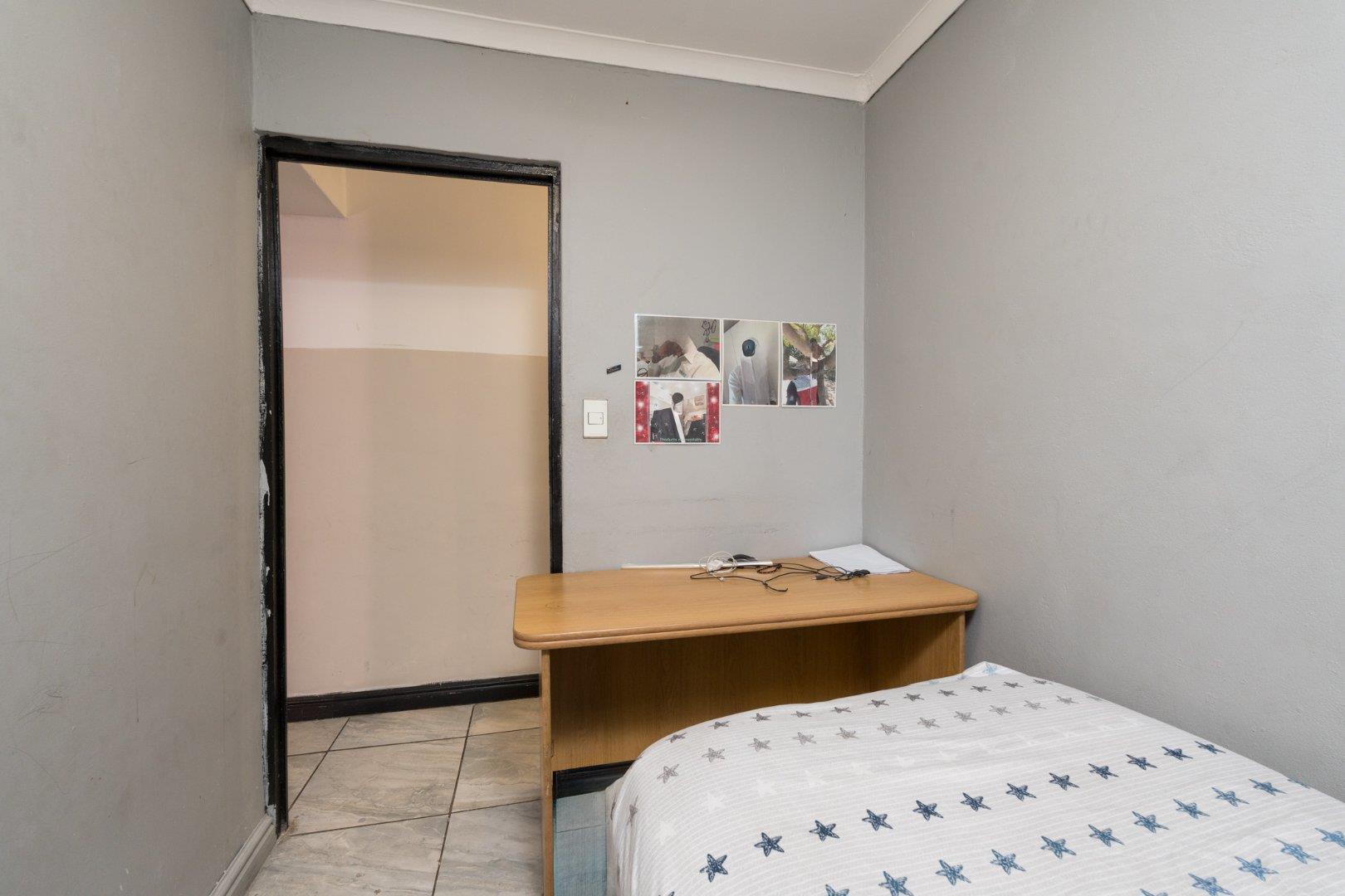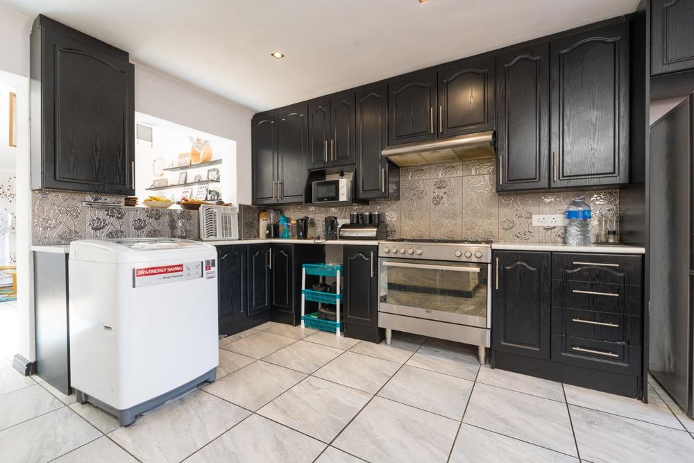 The lounge and living areas are generously sized. The kitchen is spacious with built-in cupboards and plumbing for one appliance.