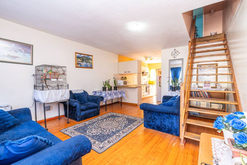 Upon entering, you're greeted by a spacious living area that leads into the kitchen. Kitchen has ample cupboard space. There is one bedroom located downstairs.