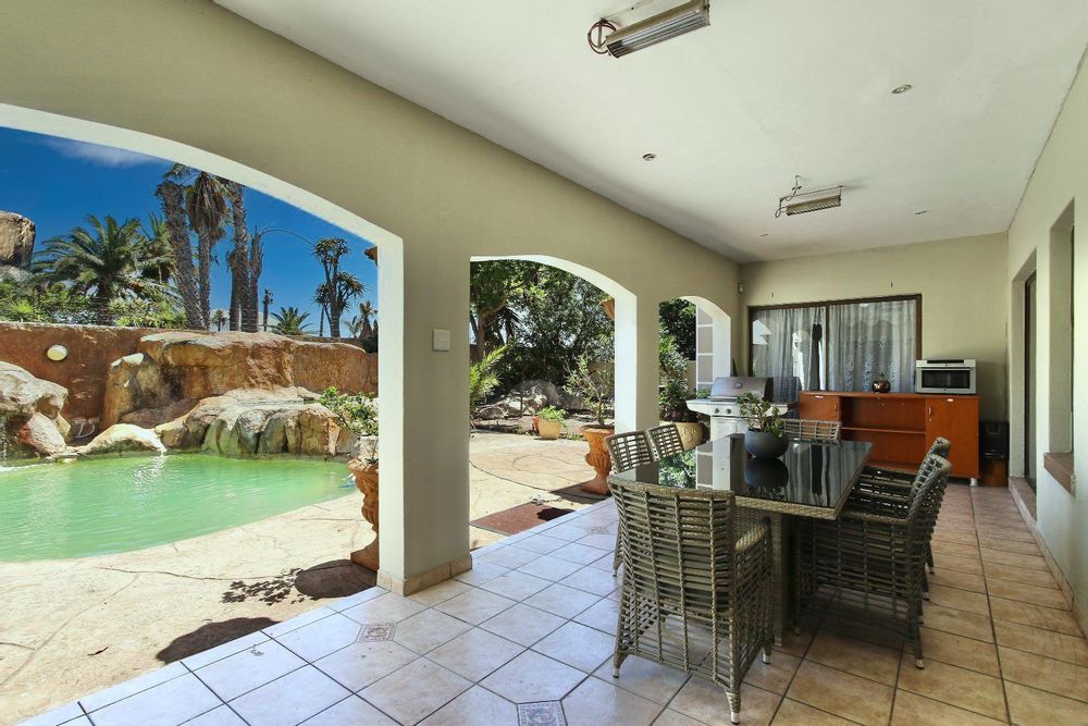 The garden is wind protected and features a heat-pump-heated sparkling blue rock pool, with a separate jacuzzi built next to the pool in the rock formation. There is space to create a veggie-garden, and the home offers three well points, irrigation and a water tank. There is also a functioning Koi pond. This home is solidly built, freshly painted, and very well priced considering its size and land size. Please see herewith a detailed layout of the accommodation flow and extras: