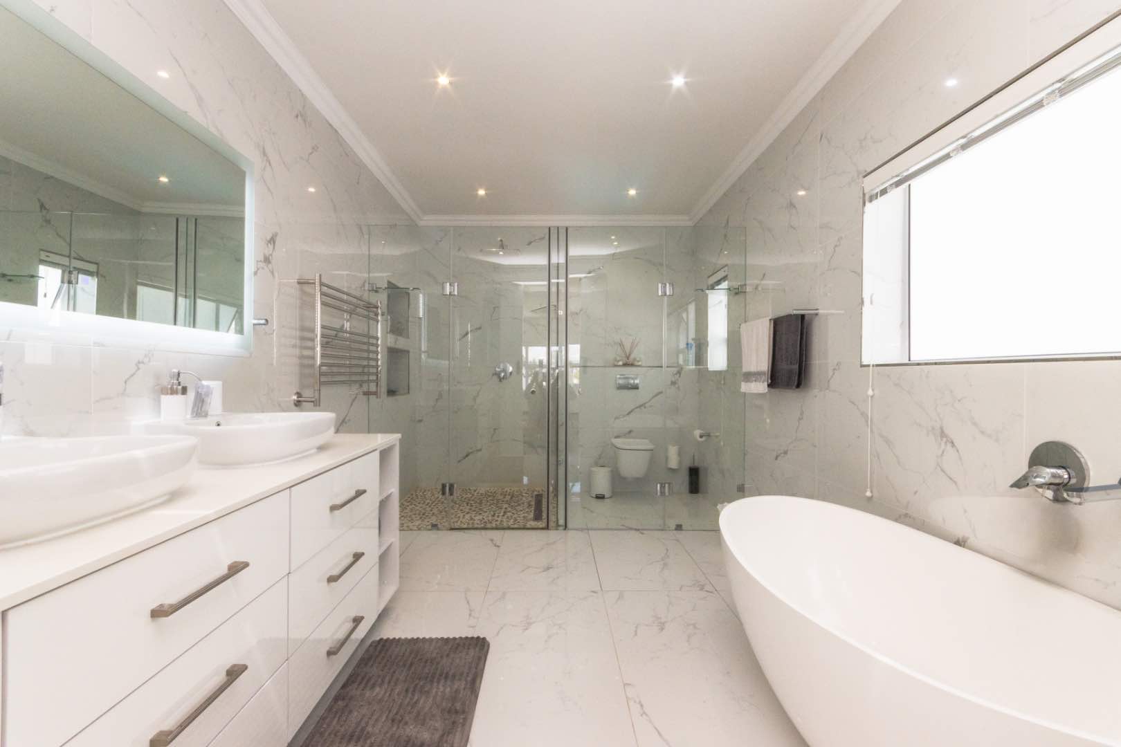 - A luxuriously large main bedroom with a large walk-in closet, and a full en-suite bathroom with twin basins.