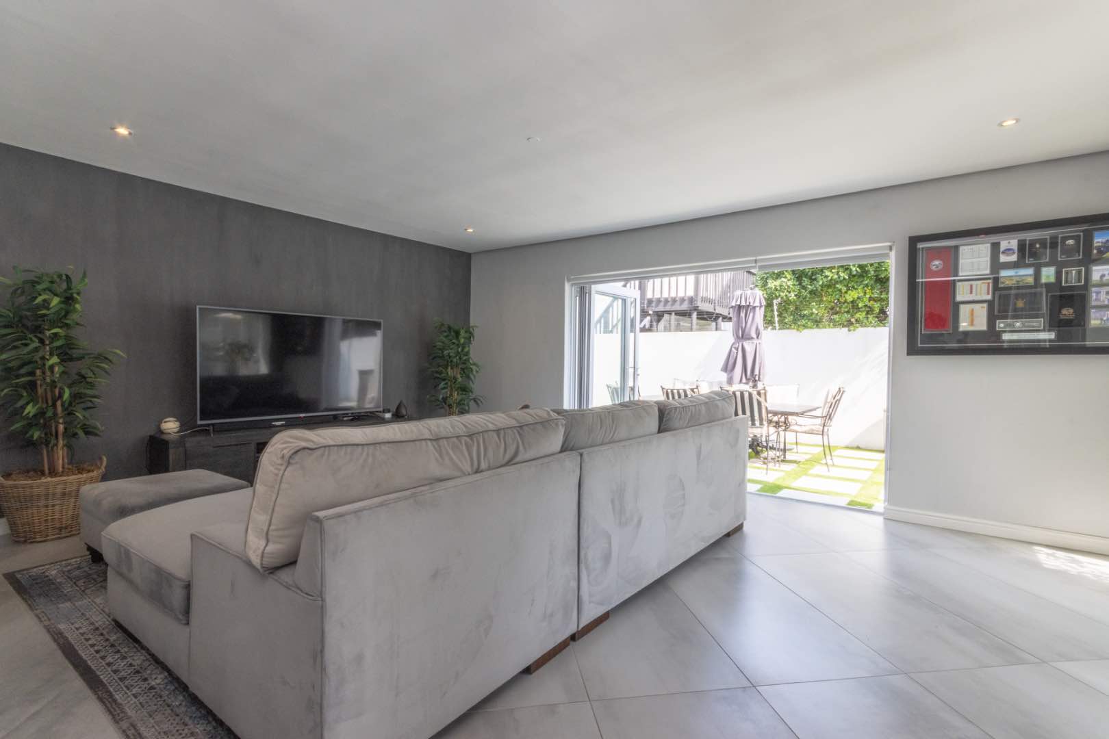 - A TV room, with stacking doors opening onto the pool area