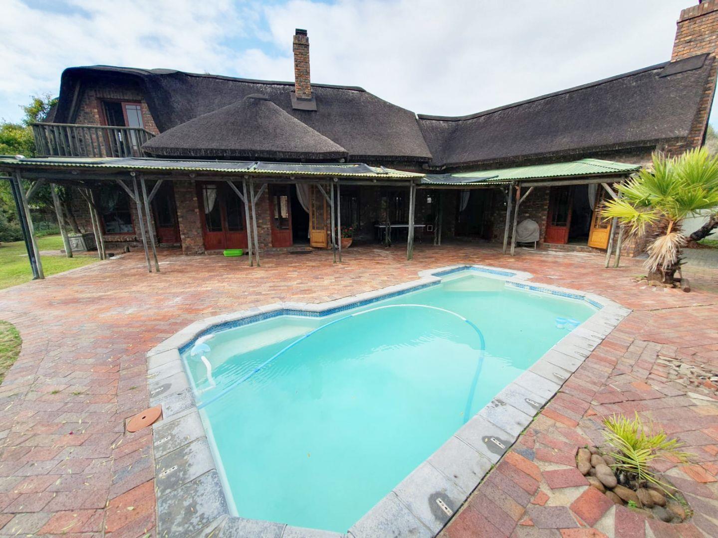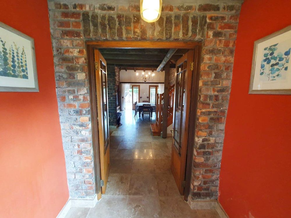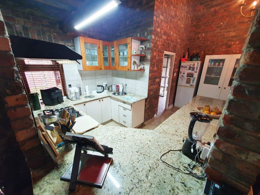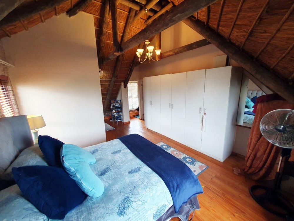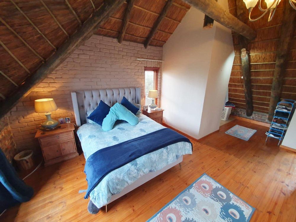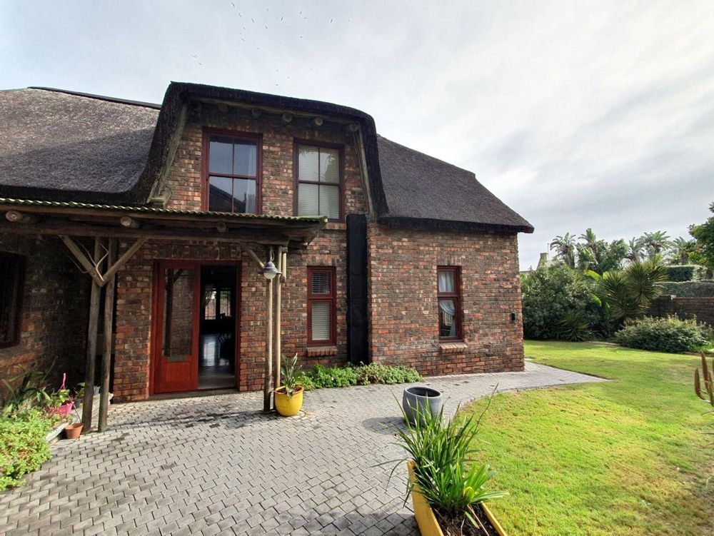The Main house contains 4 bedrooms, 4 bathrooms with warm face brick throughout to compliment the thatch. The flow extends to the stoep or large patio/braai area onto the pool, there is a large Plot and loads of potential.