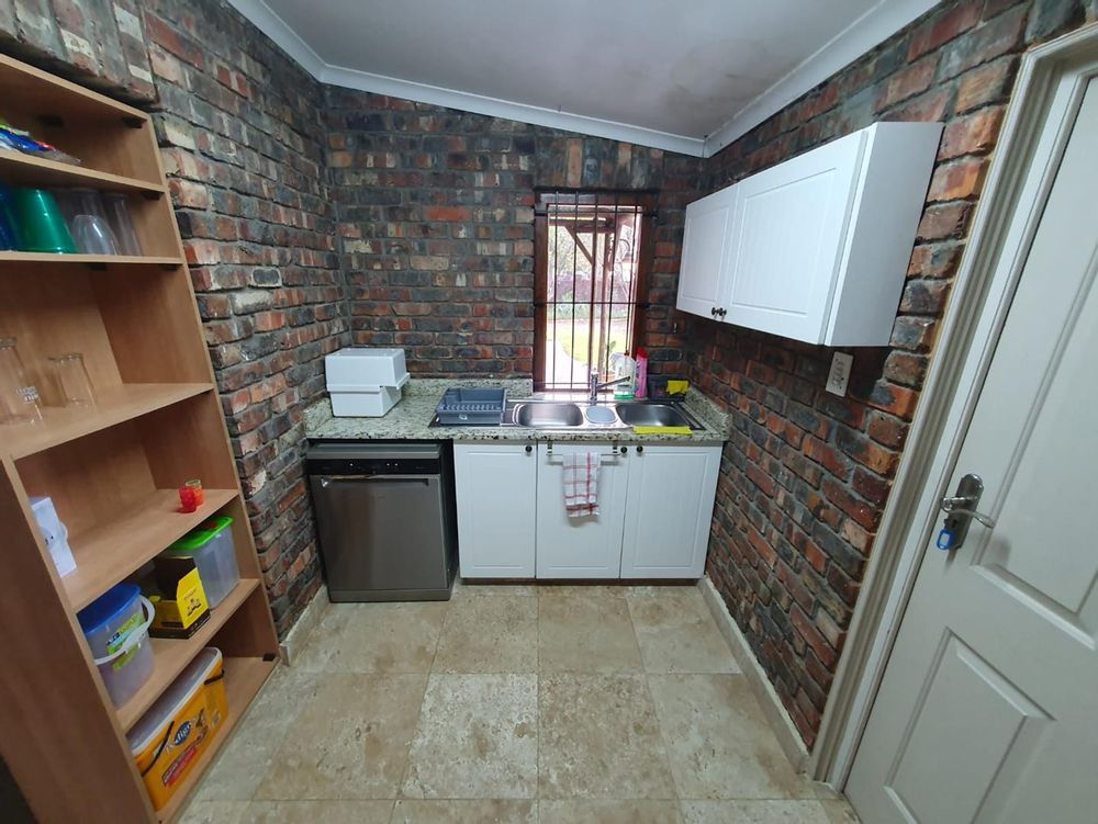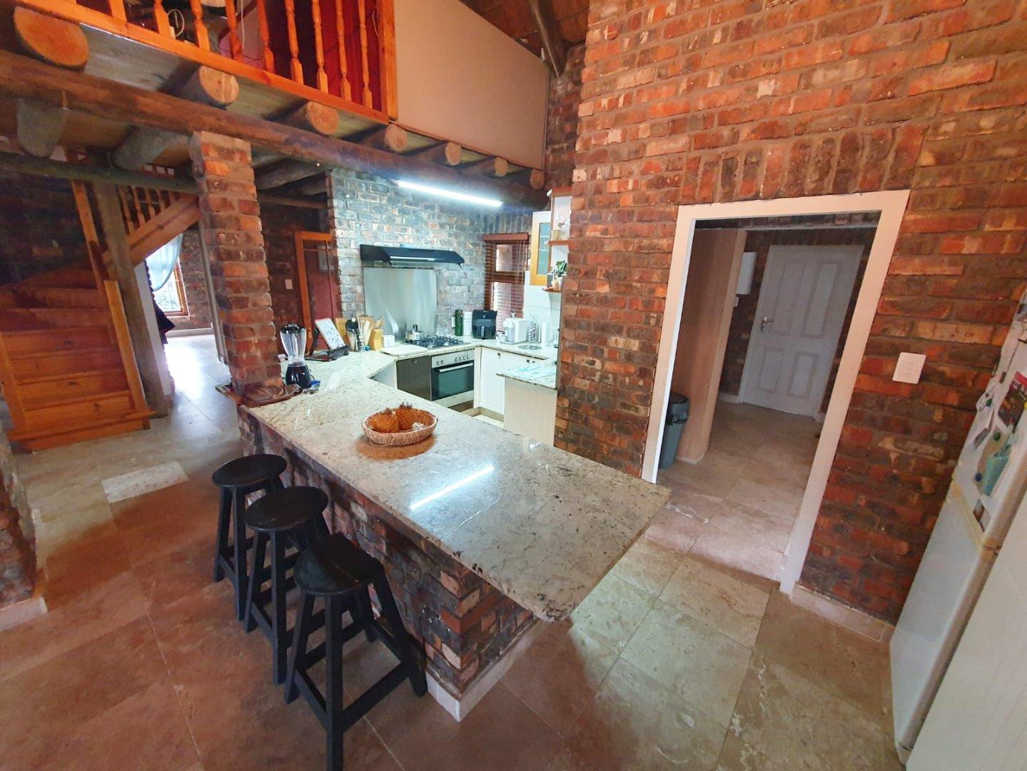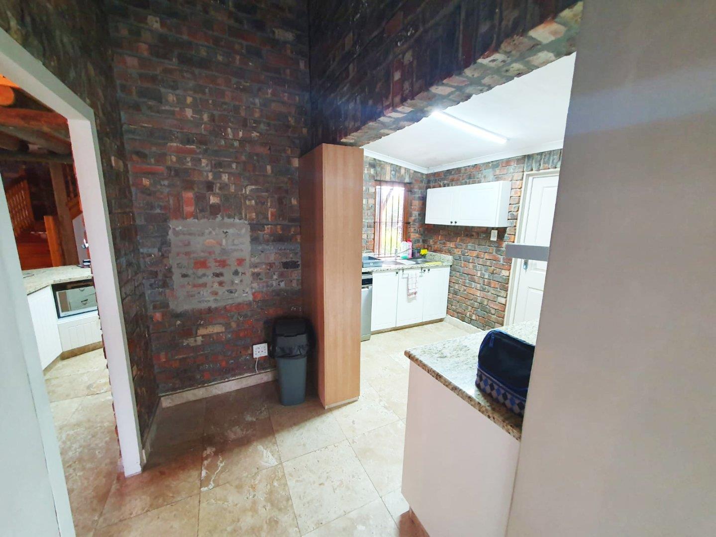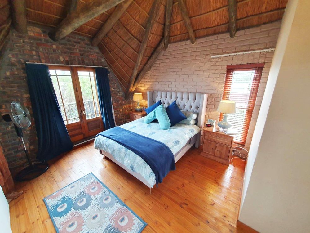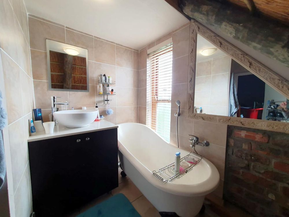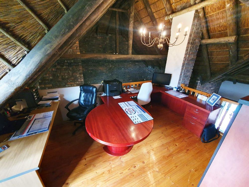 The Main house contains 4 bedrooms, 4 bathrooms with warm face brick throughout to compliment the thatch. The flow extends to the stoep or large patio/braai area onto the pool, there is a large Plot and loads of potential.