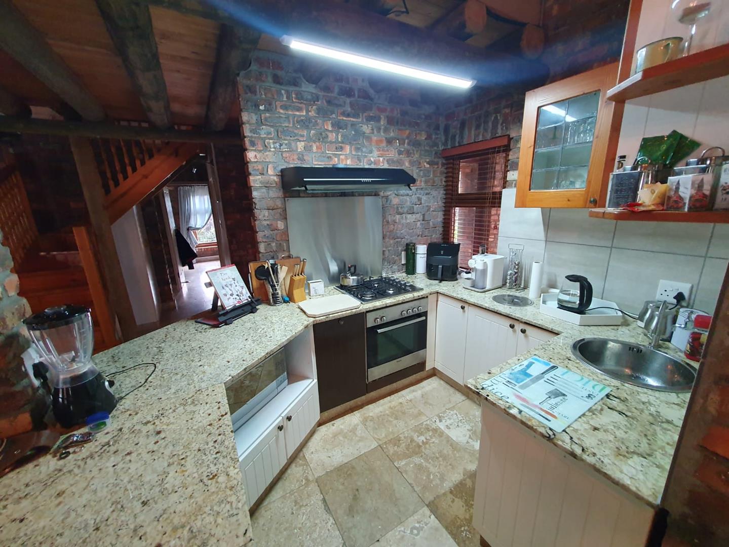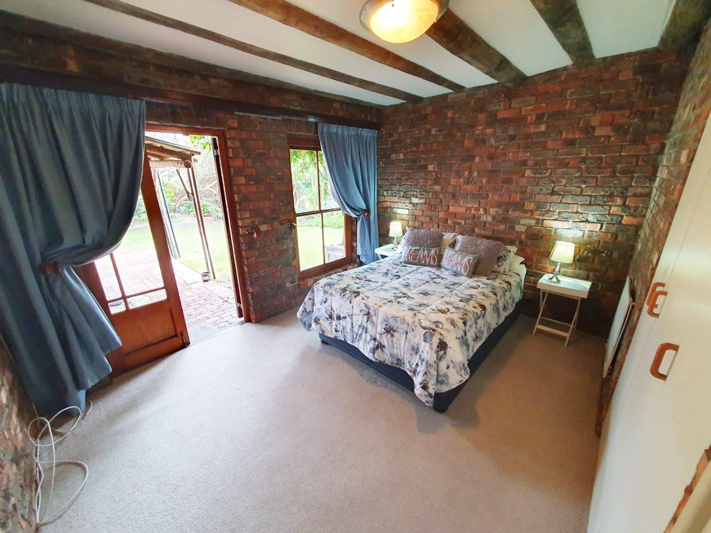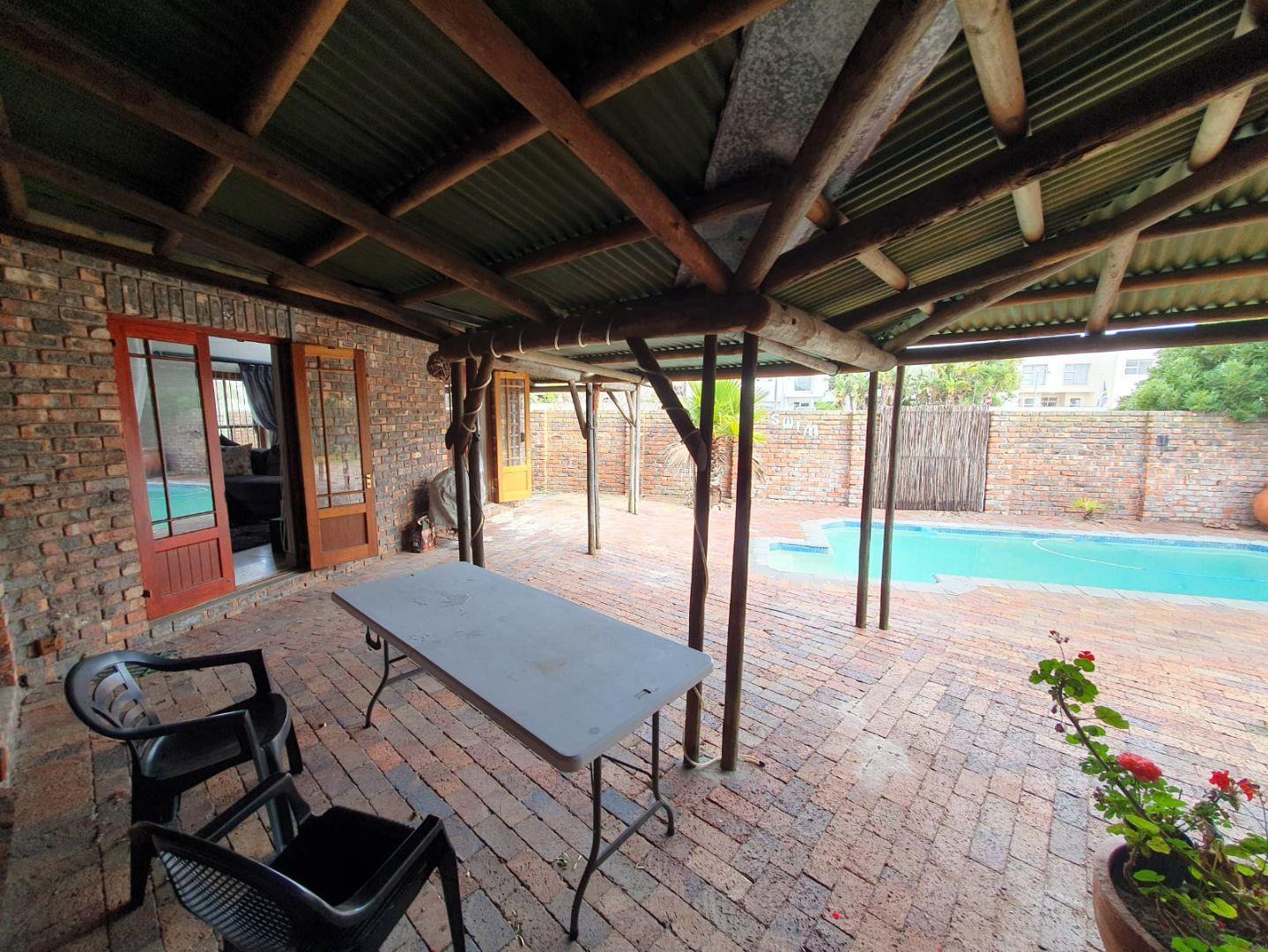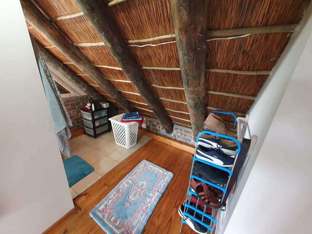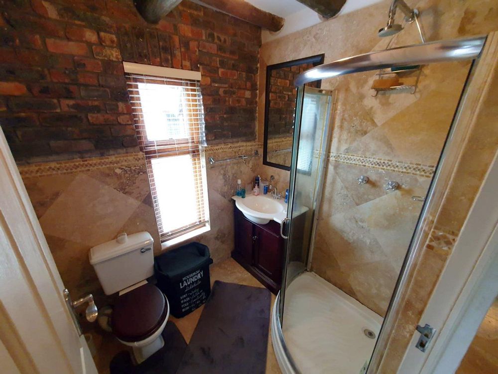 The Main house contains 4 bedrooms, 4 bathrooms with warm face brick throughout to compliment the thatch. The flow extends to the stoep or large patio/braai area onto the pool, there is a large Plot and loads of potential.