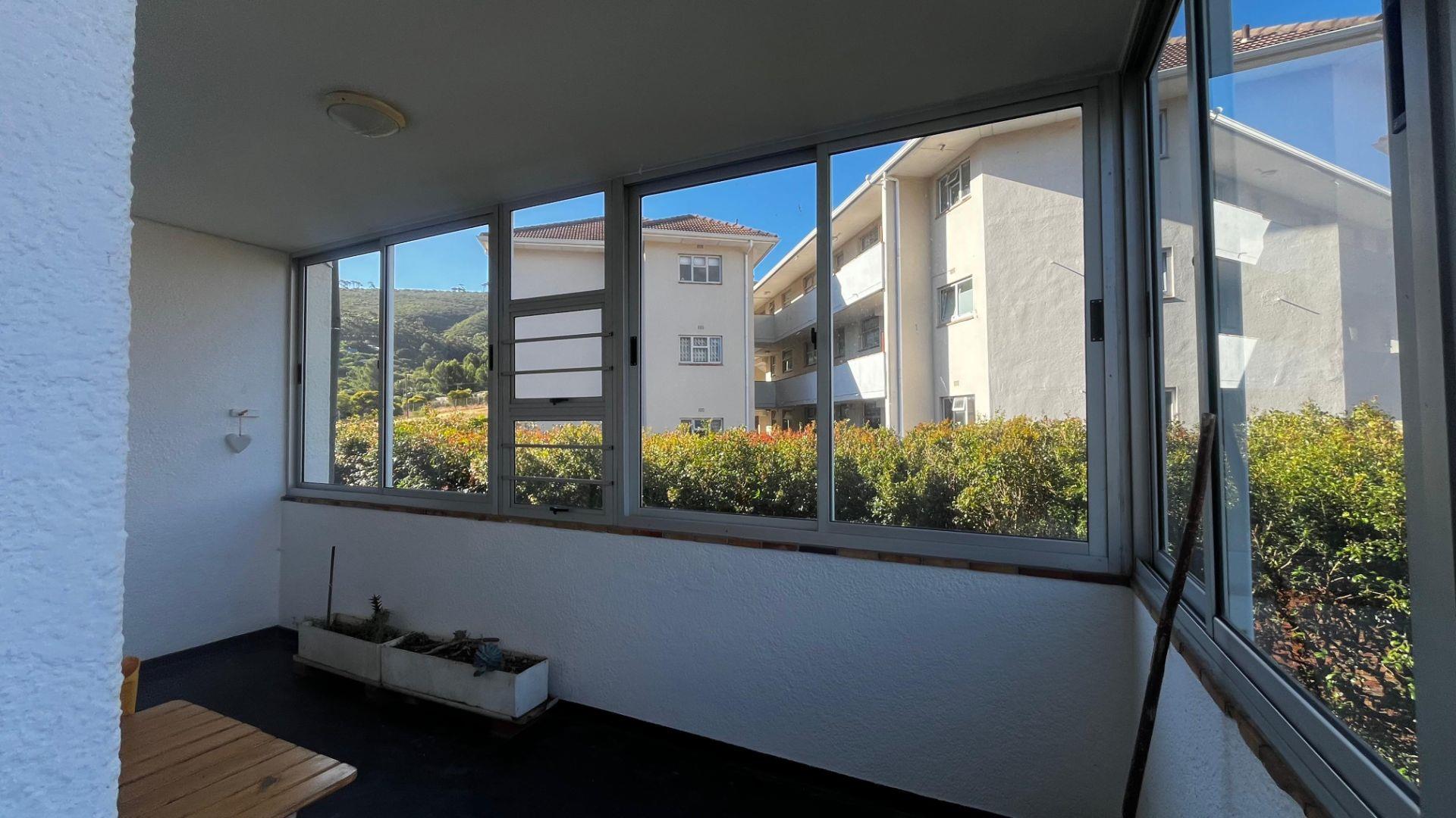 As you enter, the kitchen sits separately to the left and includes built-in cupboards. The living and dining area is generously sized and filled with natural light, with a beautiful outlook towards Signal Hill. From the lounge, a door opens onto a large enclosed wrap-around balcony with large sliding glass windows , a wonderful sunny space that feels like a sun room throughout the day.