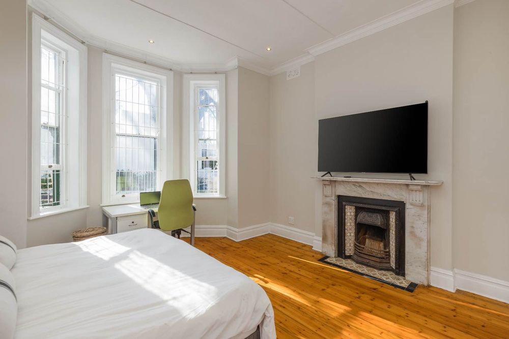 Inside, the house boasts high ceilings, sash windows, wooden floors, and beautiful authentic fireplace creating an inviting and cozy atmosphere, especially during winter evenings. The traditional architectural features blend seamlessly with modern comforts.