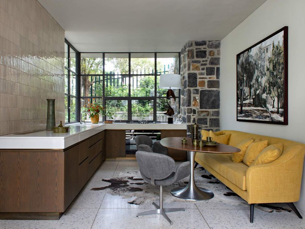The kitchen and dining area open to a secluded and very private, contemporary courtyard with an outdoor dining enclave, perfect for alfresco dining and entertaining.