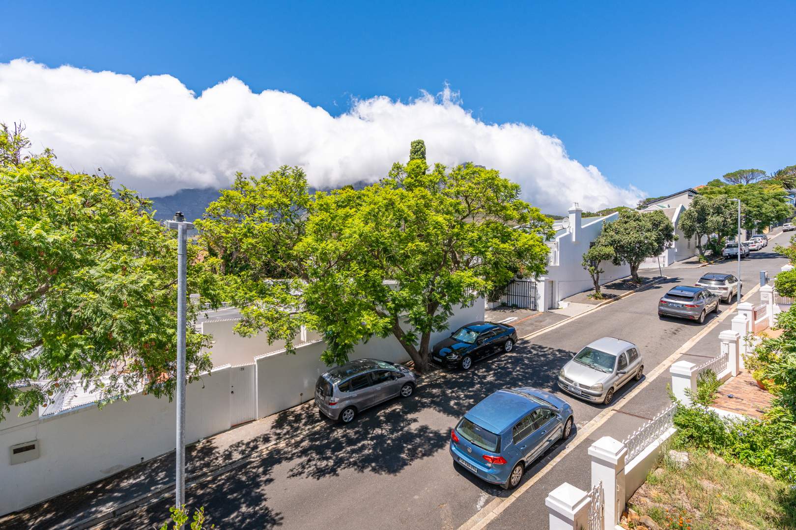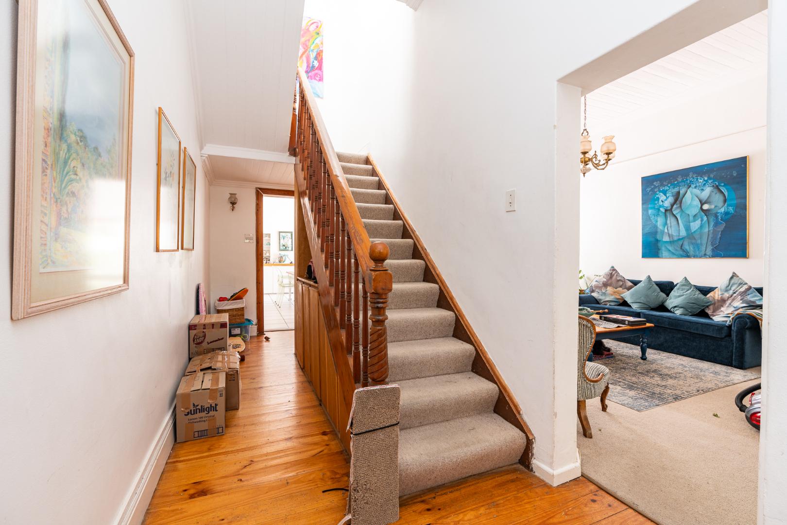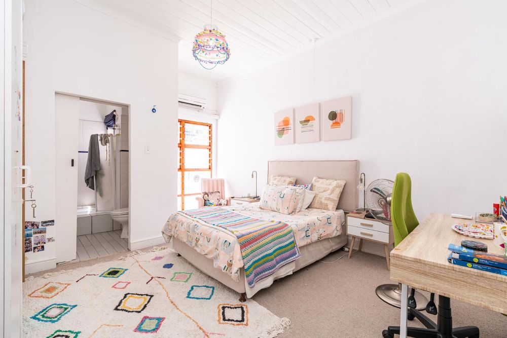 Accommodation: Main bedroom en suite, 2nd bedroom leads out to balcony with views towards Table Mountain, and third bedroom leads out to timber deck and views of Signal Hill. Family bathroom.