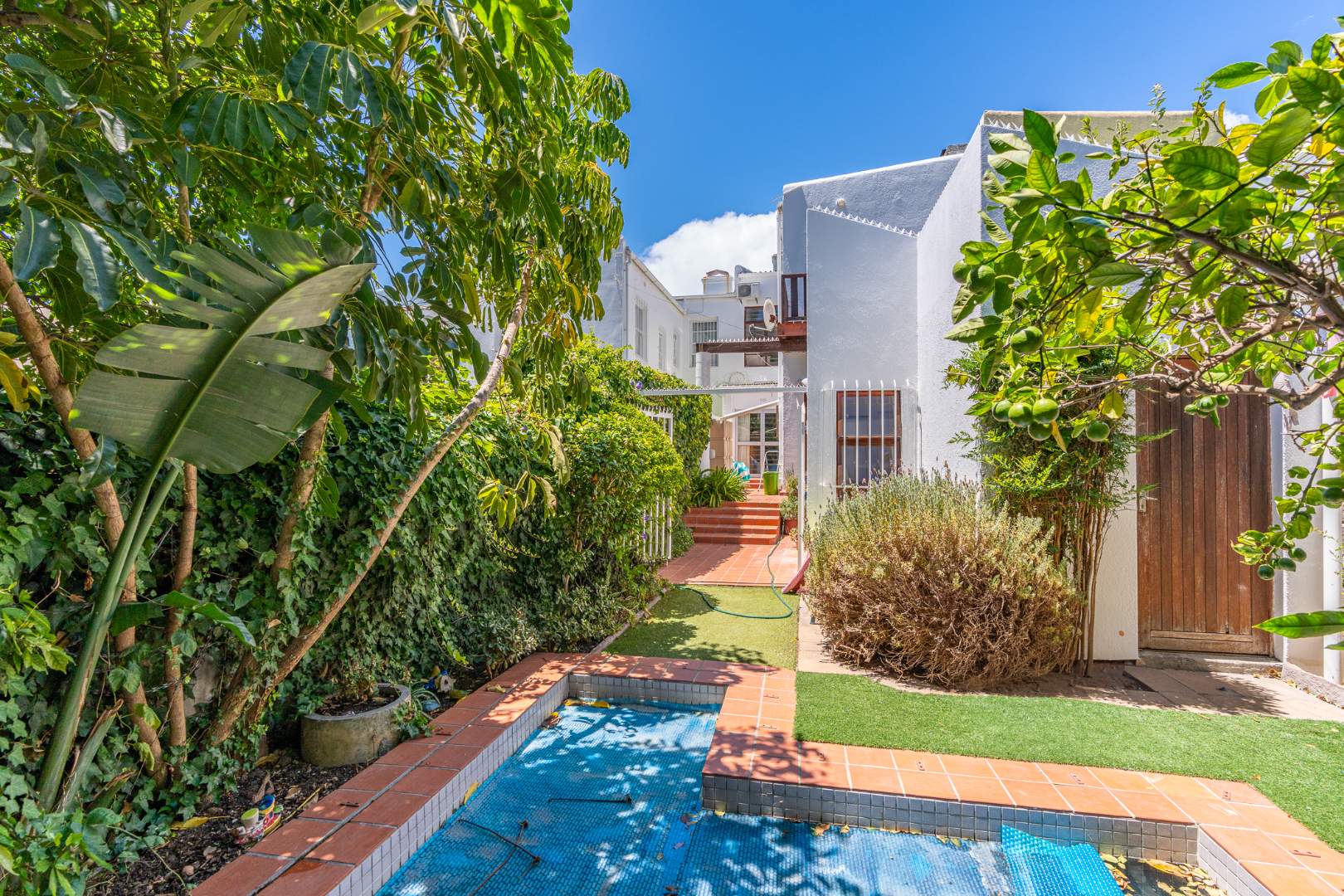Situated high up in Tamboerskloof, quiet, sheltered and with awesome views is this gracious double story with oregon floors, high ceilings and marble fireplaces.