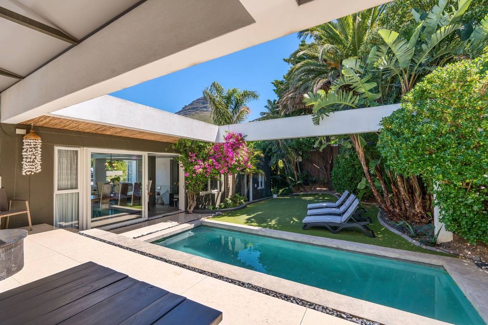 The stylish open-plan kitchen integrates beautifully with the living and dining spaces, extending onto two outdoor entertainment areas. The first a large terrace with the most exceptional Mountain and City views, a magnificent place to breath in the most beautiful views of Cape Town. The second, a courtyard garden, featuring a sparkling pool, built-in braai, and alfresco dining space—ideal for relaxed gatherings or elegant entertaining and an ideal place to entertain when the wind blows, as built to protect from the elements.