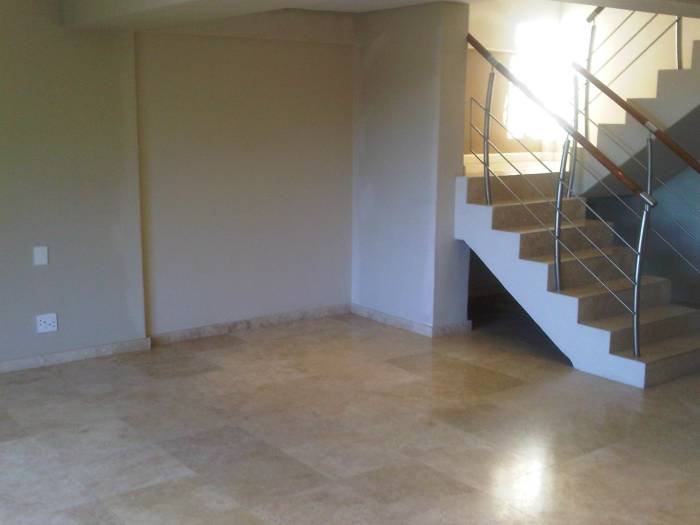 Has good security, lounge/dining room, open plan kitchen which leads to a deck with awesome views. Main bedroom is en-suite with mezzanine study or bedroom. Small salt pool and garden. Two further bedrooms en-suite. Also has double garage with direct access. Further features include tiled flooring, aluminium windows, metal roof, aircon, alarm, built in cupboards.