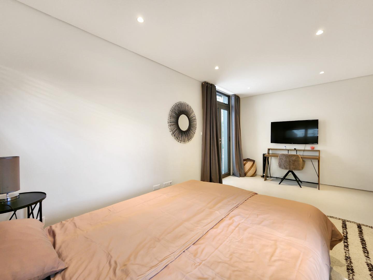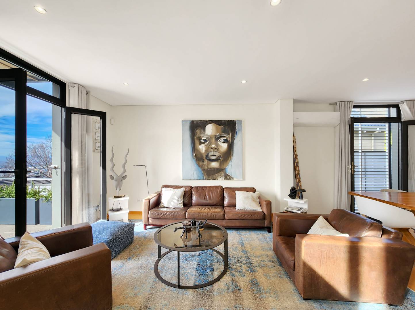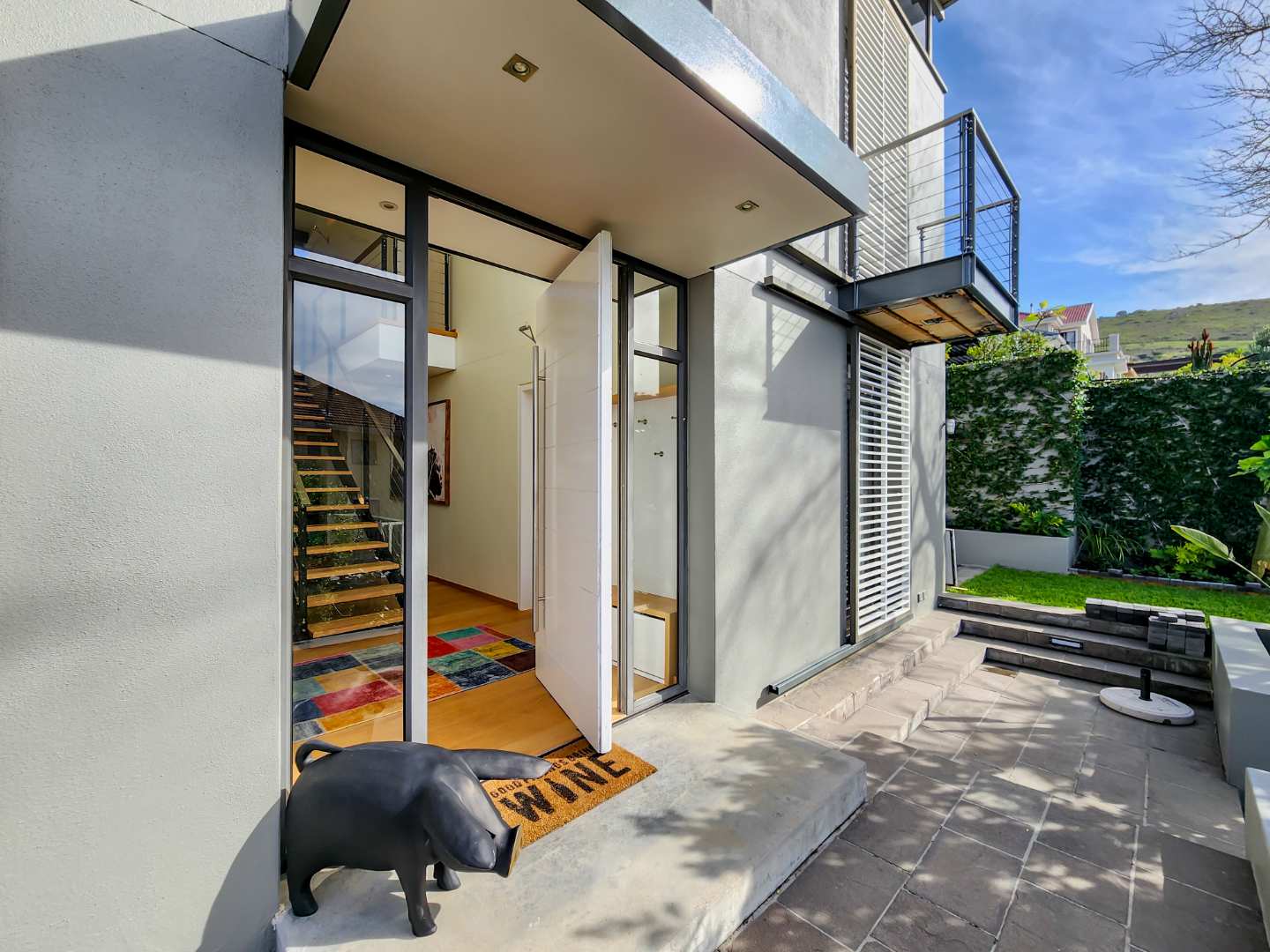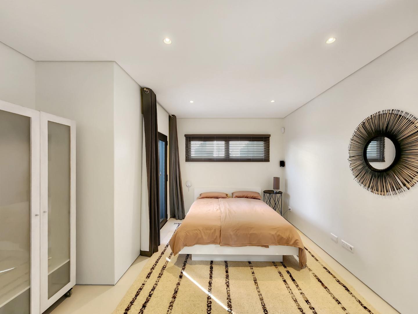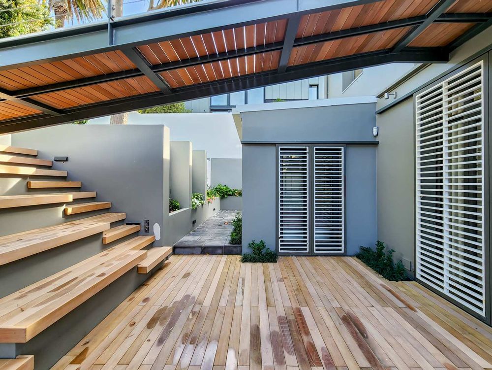 Enjoy breathtaking views of Table Mountain from the terraces and landscaped garden. The pool offers a cooling retreat in summer and is equipped with heating for use during Cape Town’s crisp winter evenings. Additional features include solar panels and a Victron battery backup system, ensuring uninterrupted comfort.