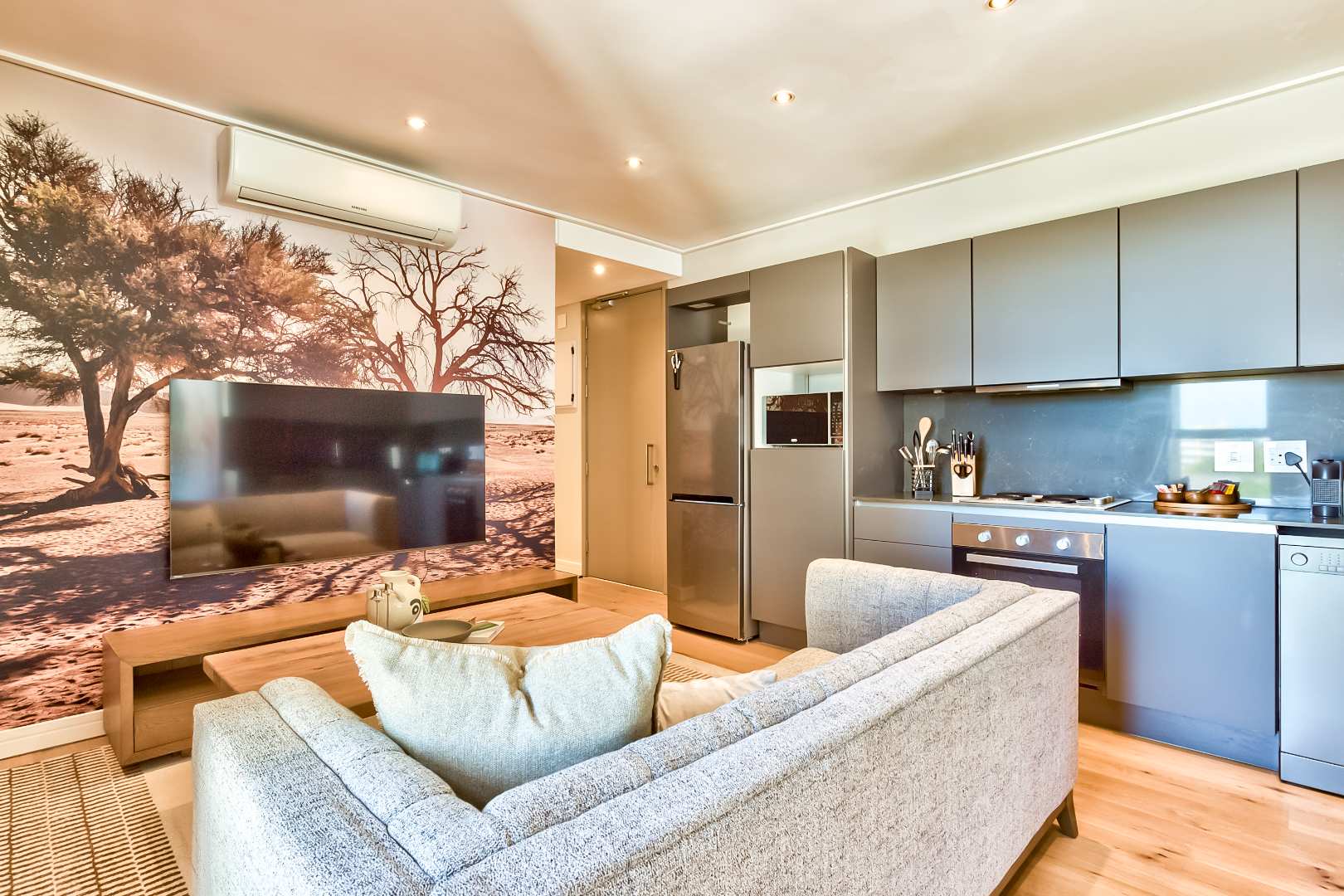 A standout feature of this apartment is the spacious private patio boasting views of Lion’s Head and Signal Hill. With BBQ/braai permitted on the patio, this outdoor space becomes a true extension of the living area — perfect for entertaining, relaxing, and enjoying Cape Town’s famous sunsets.
