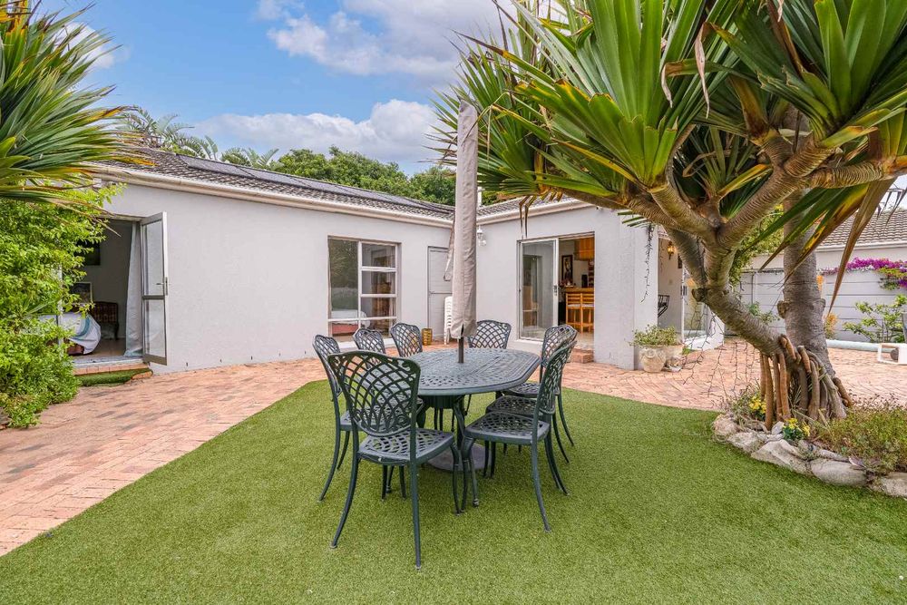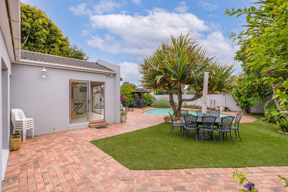 The outdoor space is a haven for relaxation, featuring a swimming pool. Surrounding the pool is astroturf, creating a low-maintenance and visually appealing area for leisure.