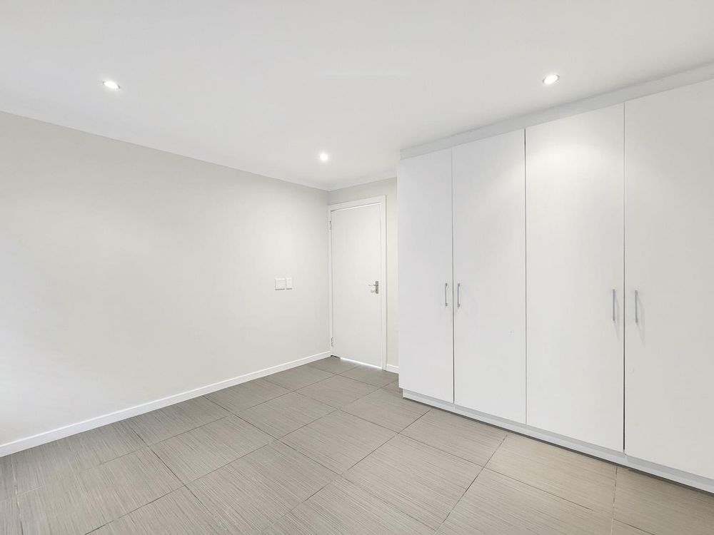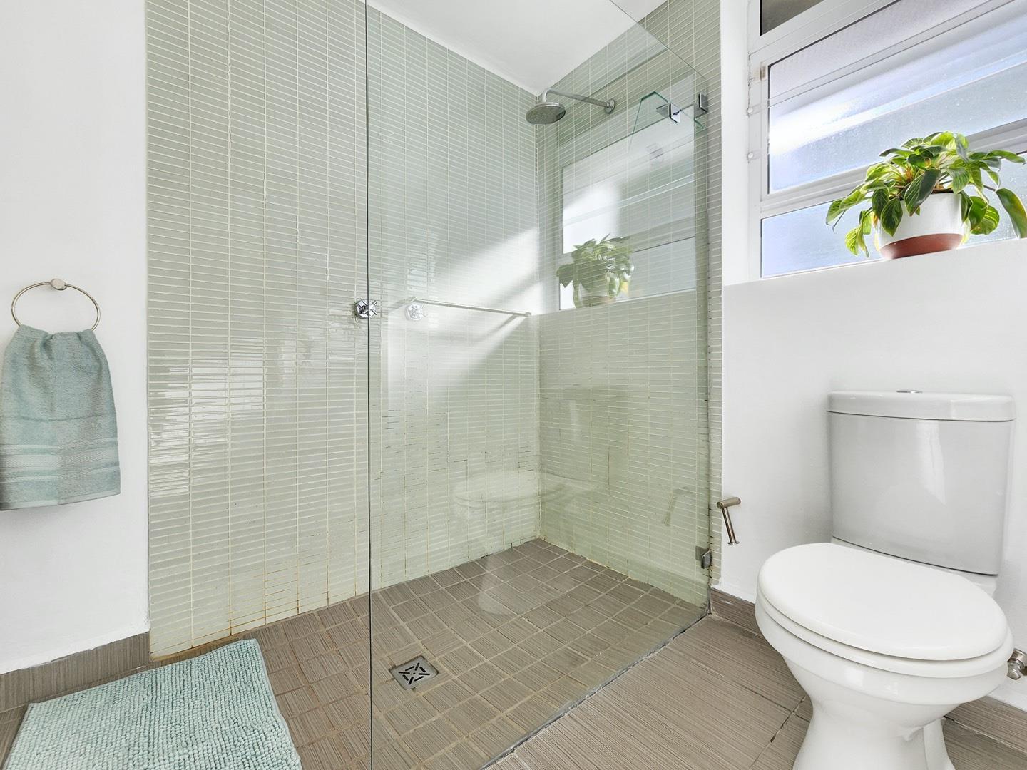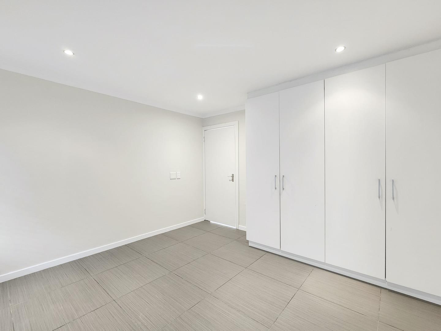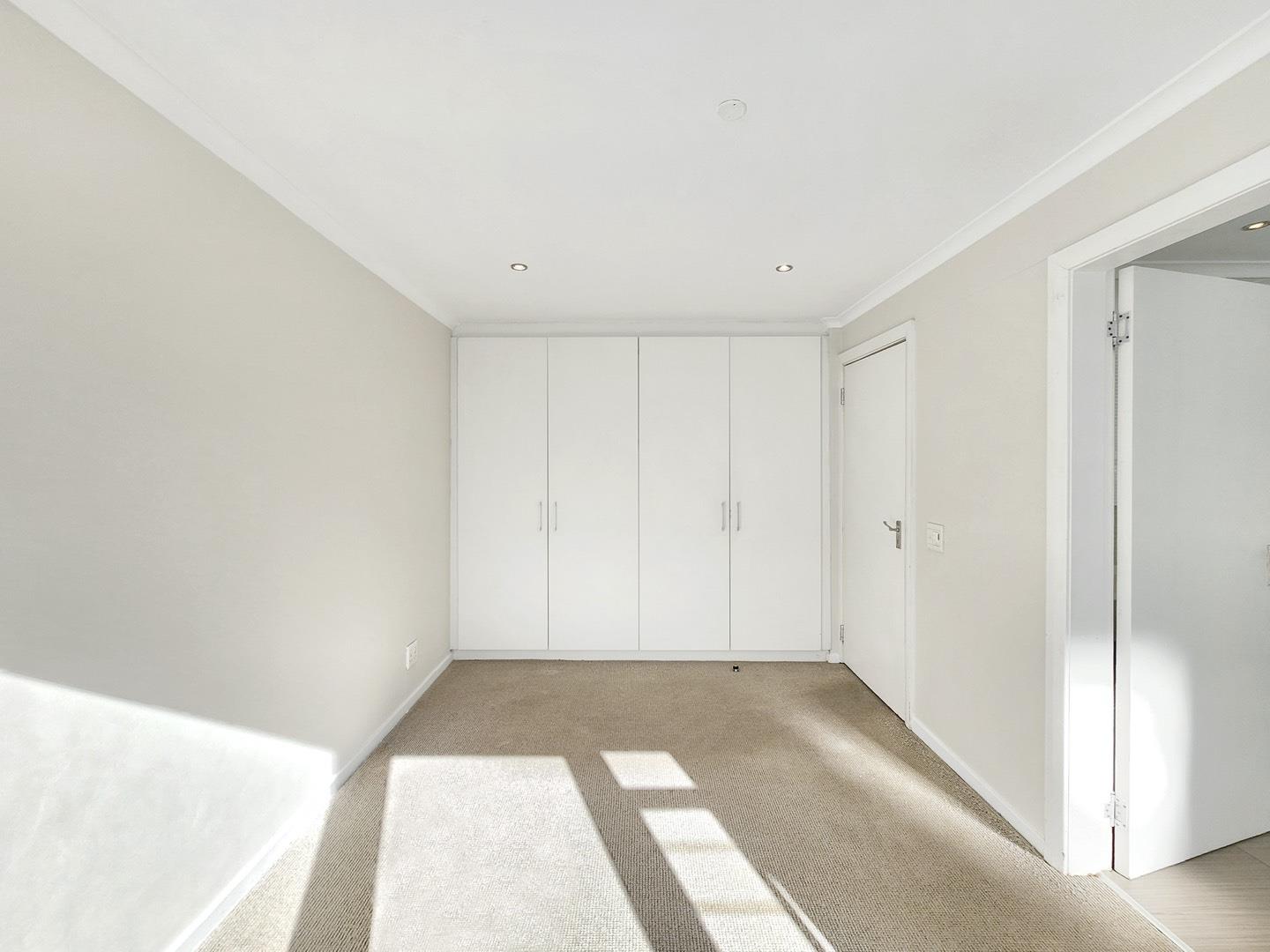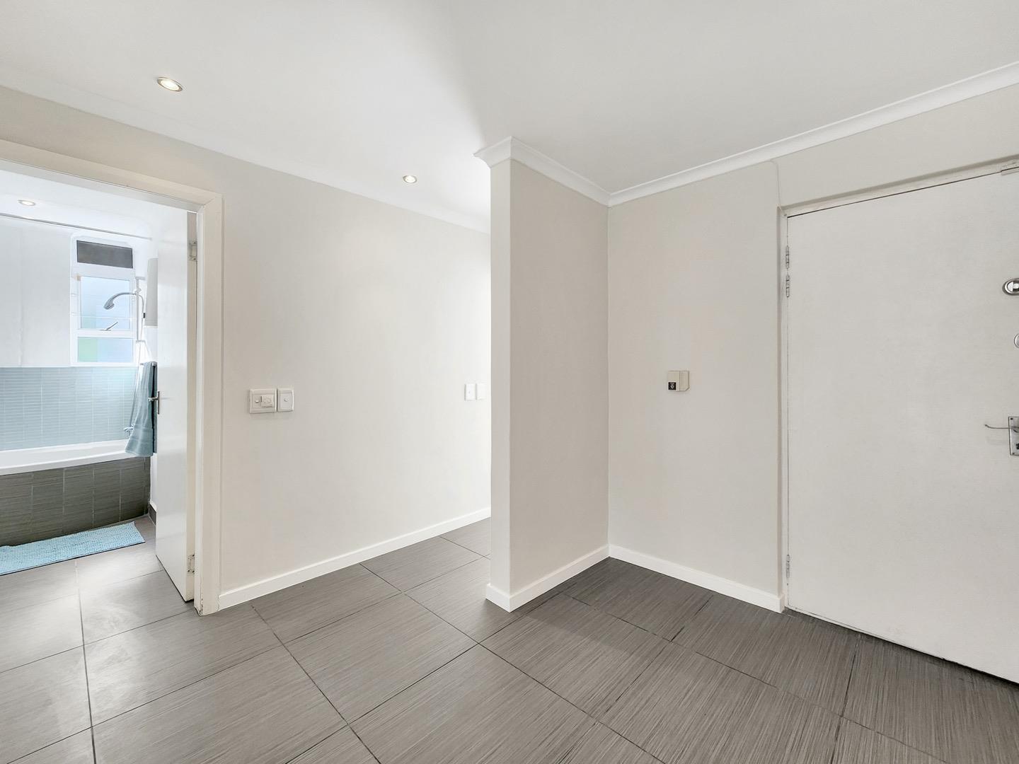 The second bedroom is equipped with built-in cupboards and offers views of Table Mountain. A bathroom with a bath, toilet, and basin is conveniently located just across the passage. Additional storage is provided by a passage cupboard perfect for linens, which also conveniently has plumbing for washing machine.