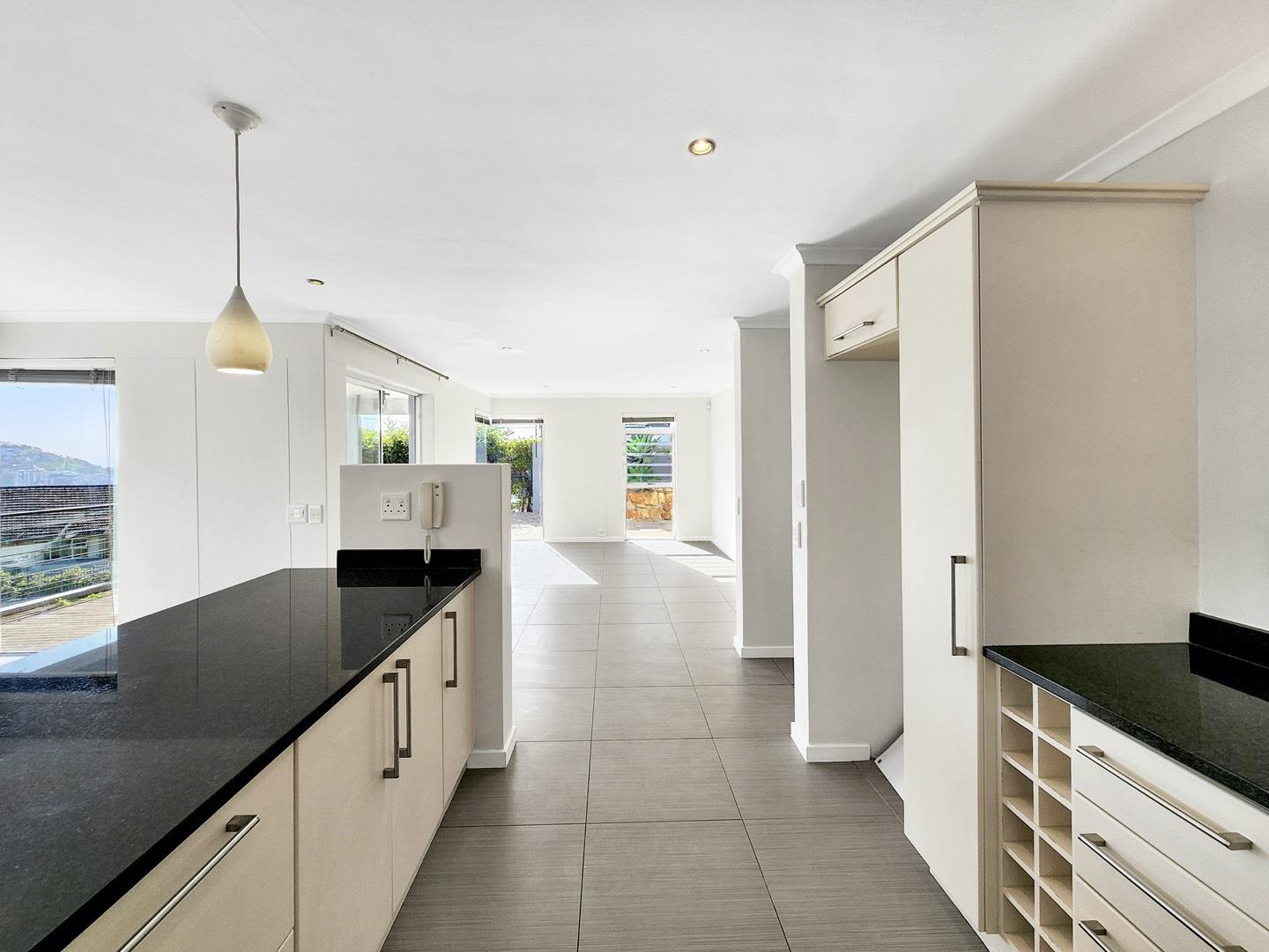 The open-plan living, dining, and kitchen area is an entertainer's delight. Both the living and dining areas boast sliding doors that open onto the large terrace. The floor-to-ceiling windows allow you to soak in the magnificent vistas of Table Mountain, Lion’s Head, and Signal Hill from the comfort of your own home.