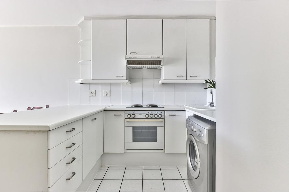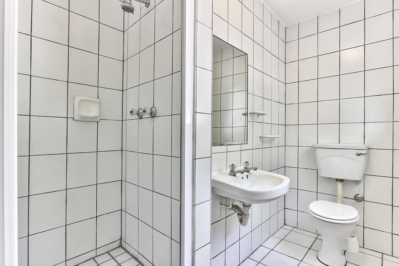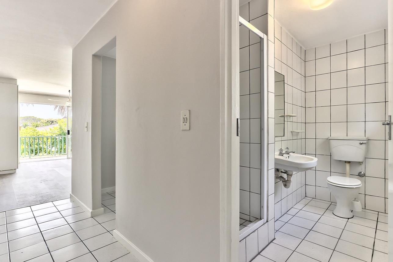 The kitchen, with its breakfast bar, offers functionality and convenience for meal preparation and dining. The living area is spacious enough to accommodate a comfortable seating arrangement and a bedroom area with built-in cupboards, maximizing the available space. The shower bathroom is neat and well-appointed, adding to the overall comfort and functionality of the apartment.