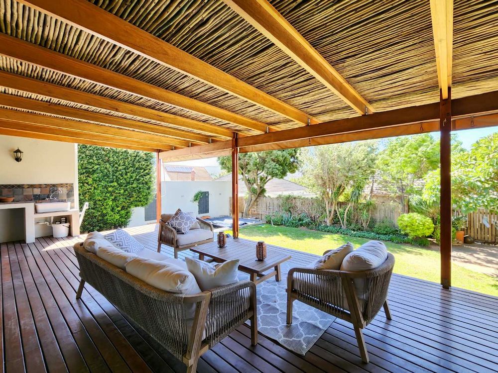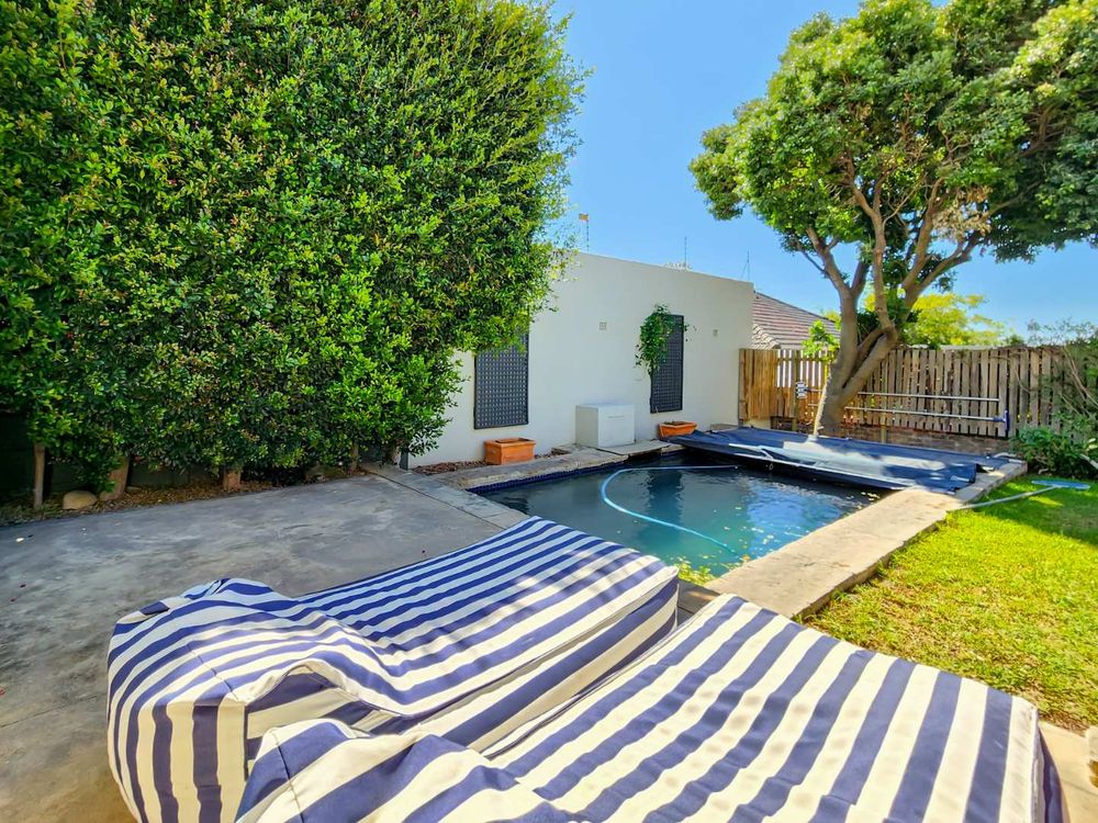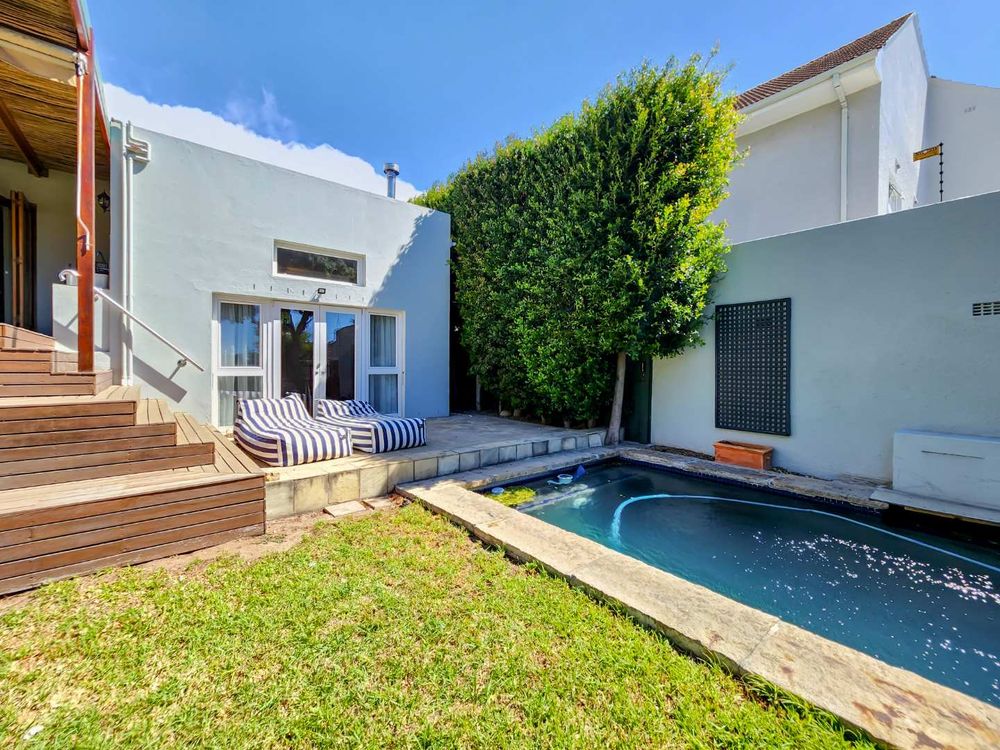 This charming three-bedroom house is located on a quiet street in Vredehoek, offering easy walking access to both Herzlia and St. Cyprians schools. The spacious open-plan living area and kitchen flow seamlessly onto a large wooden deck with an undercover braai area, which leads out to a garden and pool. All three bedrooms are generously sized, featuring ample cupboard space and Double Glazed Windows throughout.