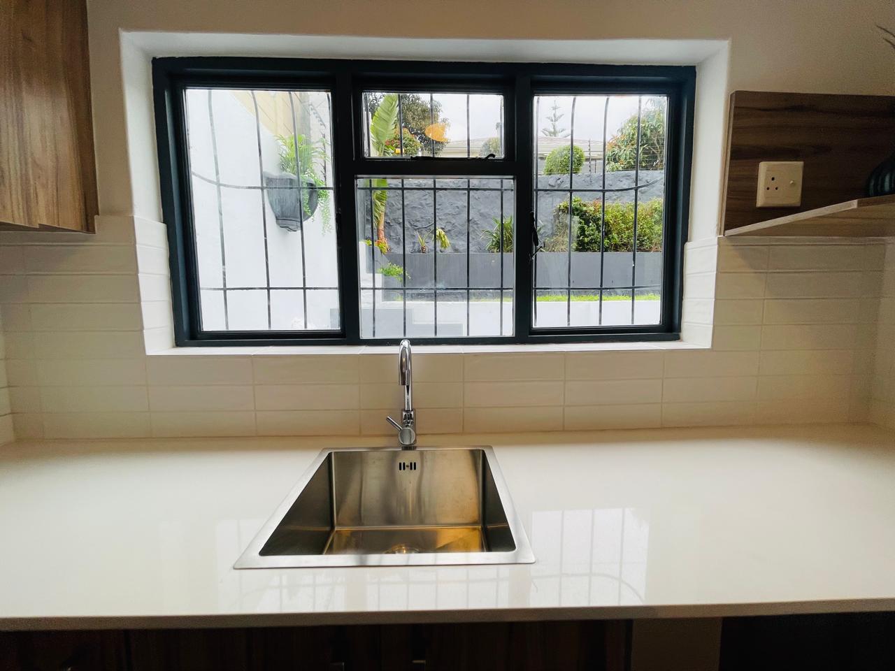The spacious kitchen benefits from stylish carpentry, a new Bosch built-in electric stove, and is conveniently plumbed for a dishwasher, as well as a separate spacious cupboard plumbed for a washing machine. The kitchen flows out to the lovely back garden, which includes an undercover built-in braai and patio, area ideal for entertaining friends and family.