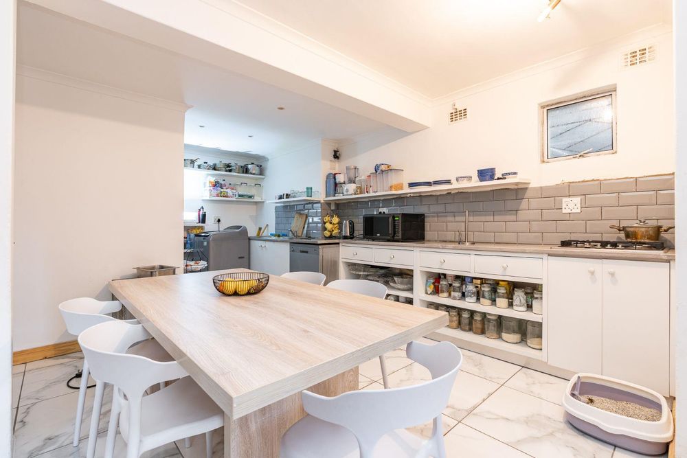 The kitchen is functional with built-in cupboards and scope for modernisation. Downstairs, a separate flatlet provides additional rental or student accommodation opportunities.