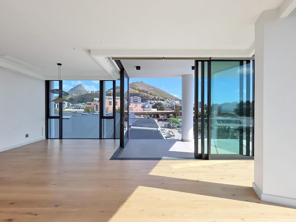 Floor to ceiling windows frame breathtaking vistas of Lion’s Head, Signal Hill, the iconic Table Mountain, and the vibrant harbour, creating a constantly evolving backdrop of natural beauty and city energy.