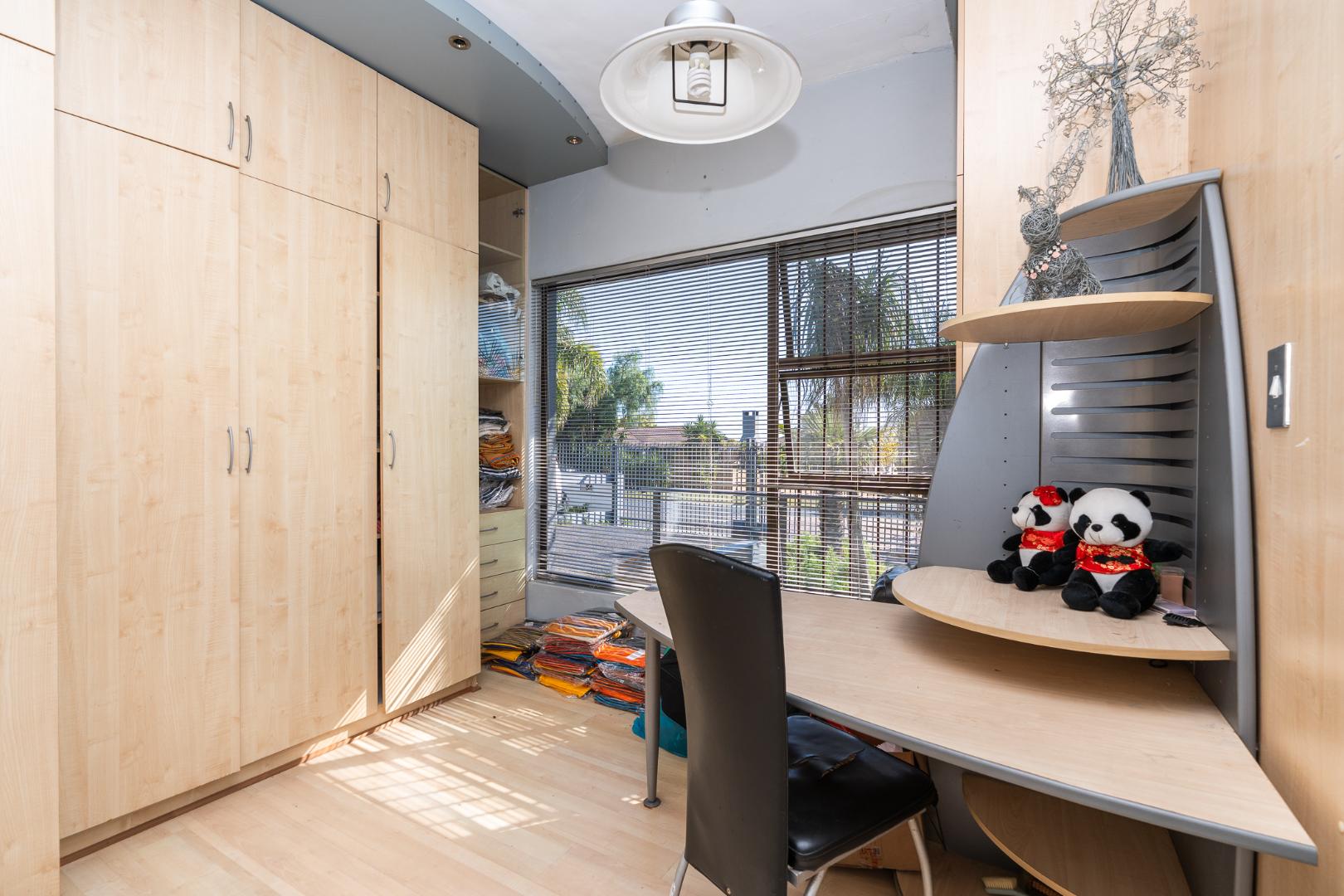 The second lounge and dining area provide an inviting space for enjoying sit-down meals and engaging in long conversations. The home's unique layout features four bedrooms on the ground floor, all equipped with built-in cupboards, provides a sense of connectivity among occupants.