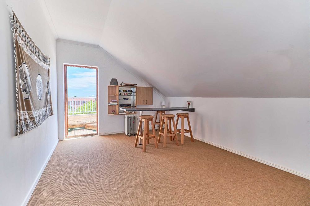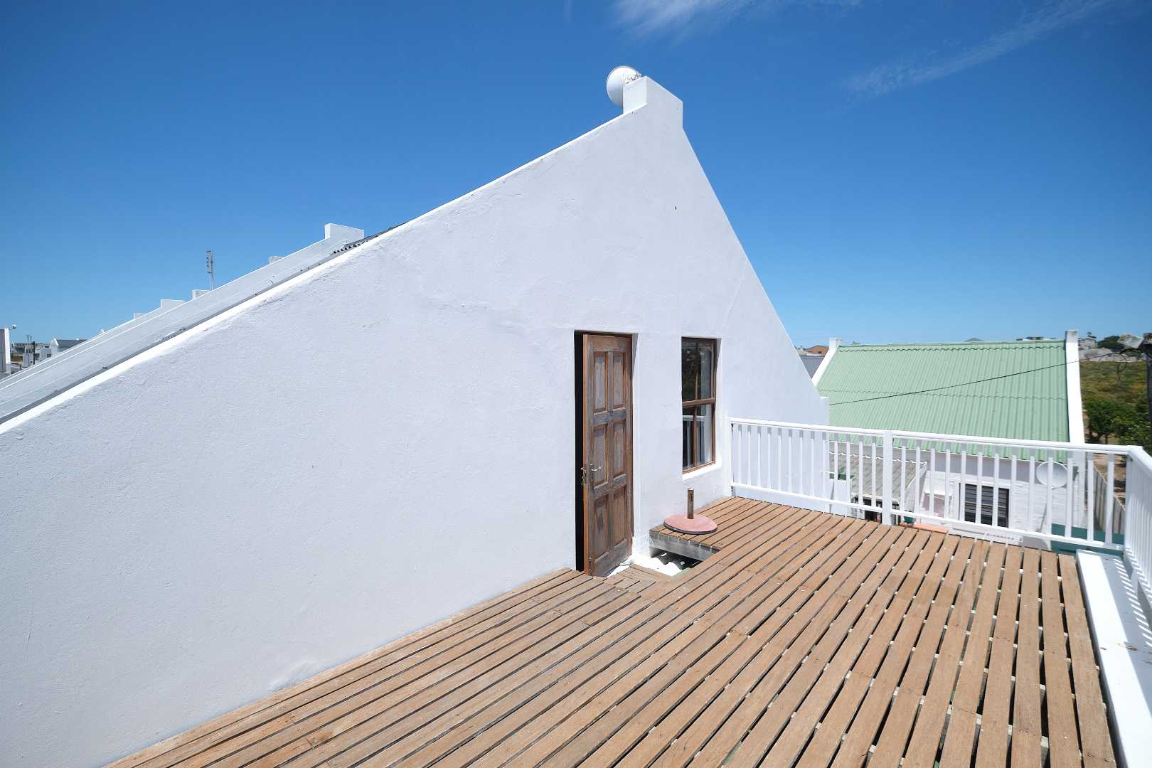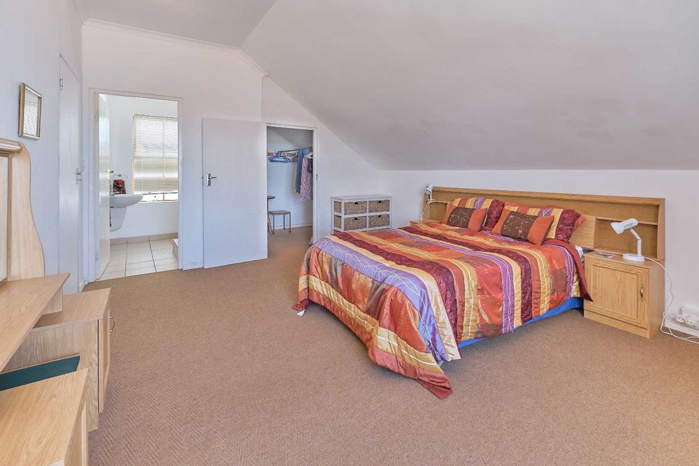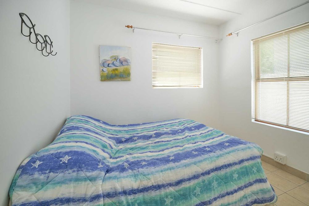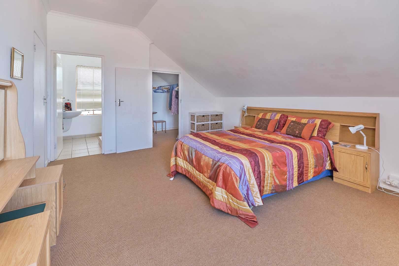Upstairs, you'll find the main bedroom with an en-suite bathroom and walk-in wardrobe, providing a private sanctuary. The en-suite bathroom includes a shower, a toilet, and a basin. Adjoining the main bedroom is a second living area that leads out onto a generous patio. Here, you can enjoy breathtaking views of Yzerfontein and the sea, making it an idyllic spot for sunbathing or savoring sundowners.