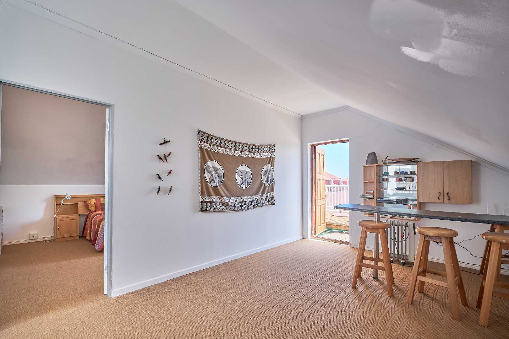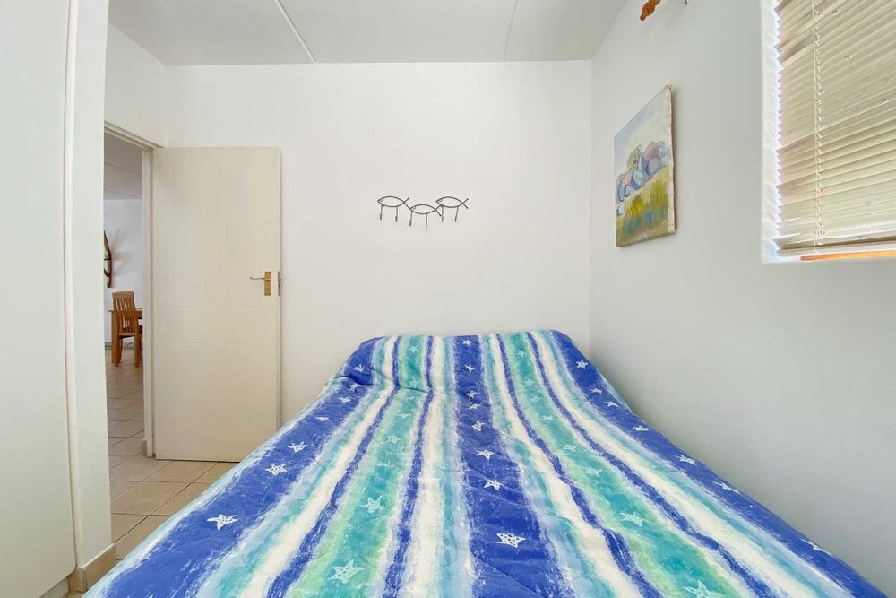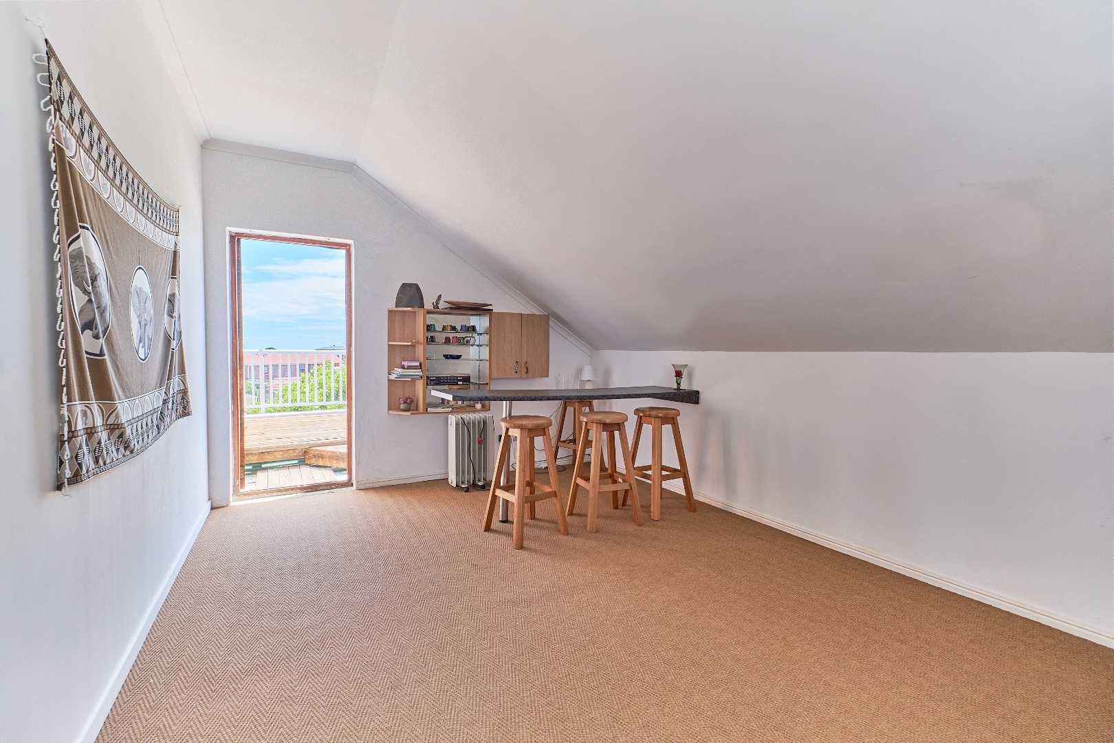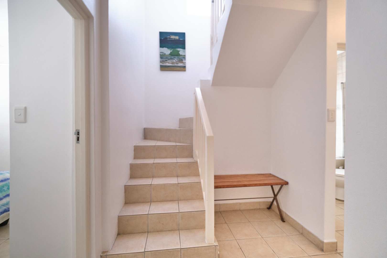 Upstairs, you'll find the main bedroom with an en-suite bathroom and walk-in wardrobe, providing a private sanctuary. The en-suite bathroom includes a shower, a toilet, and a basin. Adjoining the main bedroom is a second living area that leads out onto a generous patio. Here, you can enjoy breathtaking views of Yzerfontein and the sea, making it an idyllic spot for sunbathing or savoring sundowners.