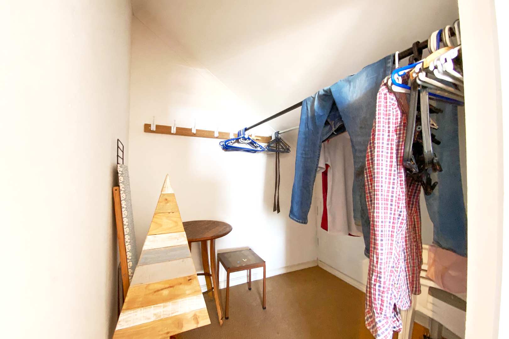 The thoughtfully designed home features a well-appointed kitchen and living room on the ground floor, along with two spacious bedrooms that boast ample storage. A bathroom which includes a bath with a shower overhead, a toilet, and a basin completes the downstairs area. Adding to the convenience, the garage has direct access to the living room, which seamlessly opens up to a barbecue area and a nearby washing line.