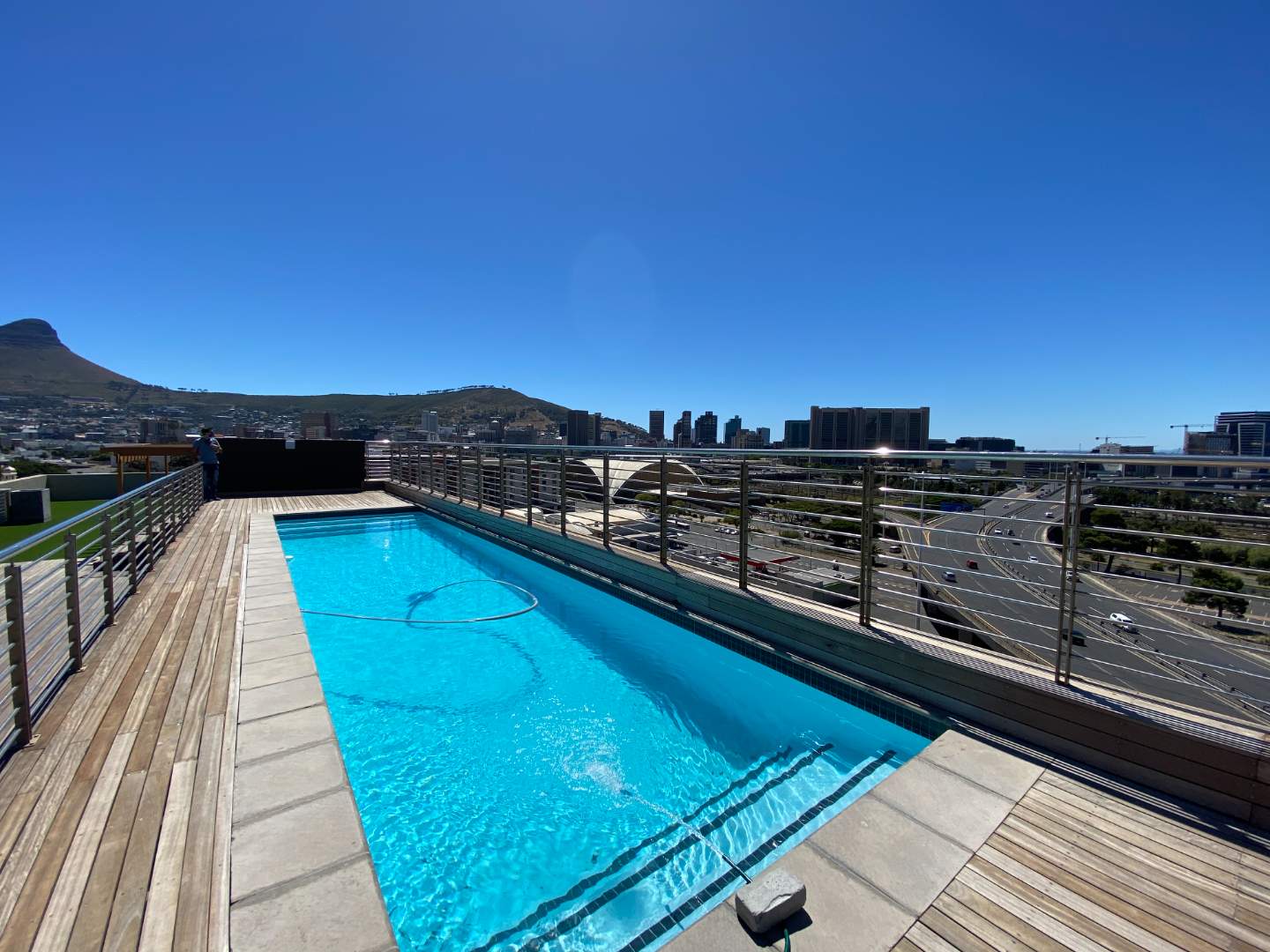 24hr security and access control with rooftop pool and lounge area overlooking the City Bowl